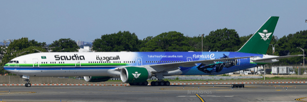 Pre-Order JC Wings XX40318 1:400 Saudi Arabian Airlines Boeing 777-300ER "Formula E 2024" Reg: HZ-AK43