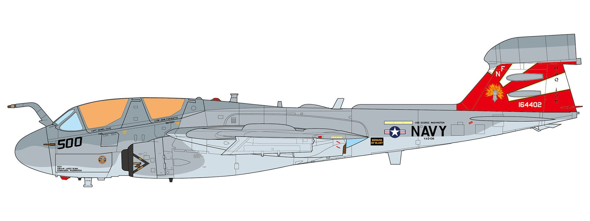 JC Wings JCW-72-EA6B-007 1:72 EA-6B Prowler U.S. NAVY VAQ-136 Gauntlets,USS George Washington,2012