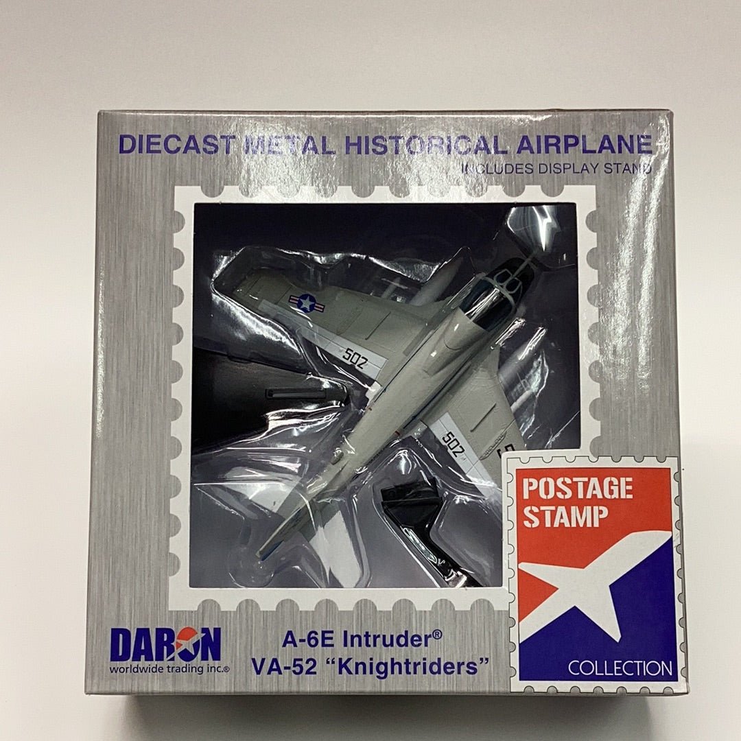 The A-6 Intruder was a carrier-based twin Jet-engine all weather attack aircraft operated by the US Navy and Marine Corps between 1963 and 1997. A-6 intruders first saw action during the Vietnam War, where the aircraft's long range and heavy payload coupled with its ability to fly in all-weather made it invaluable during the war. The Intruder's side by side seating enhanced its ability to fulfill its typical mission profile of flying low to deliver its payload. The intruder used vastly upgraded navigation and attack systems and advanced radar to navigate through mountain valleys at low levels in order to minimize the aircraft's risk from enemy radar-guided missiles. The VA-52 Knightriders were proud operators of the Intruder from November 1967 to December 1994. They became the most decorated Intruder squadron for its sustained efforts during the Vietnam War. This die-cast metal model comes in 1/140 scale with stand. Model is approximately 4 3/4 inches long with 4 1/2 inch wingspan.