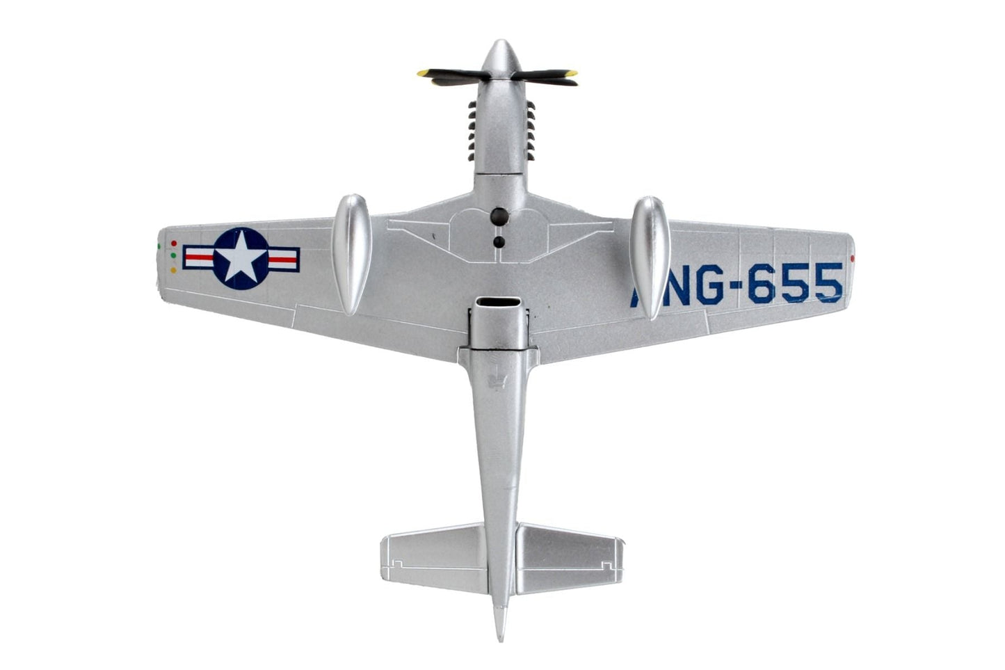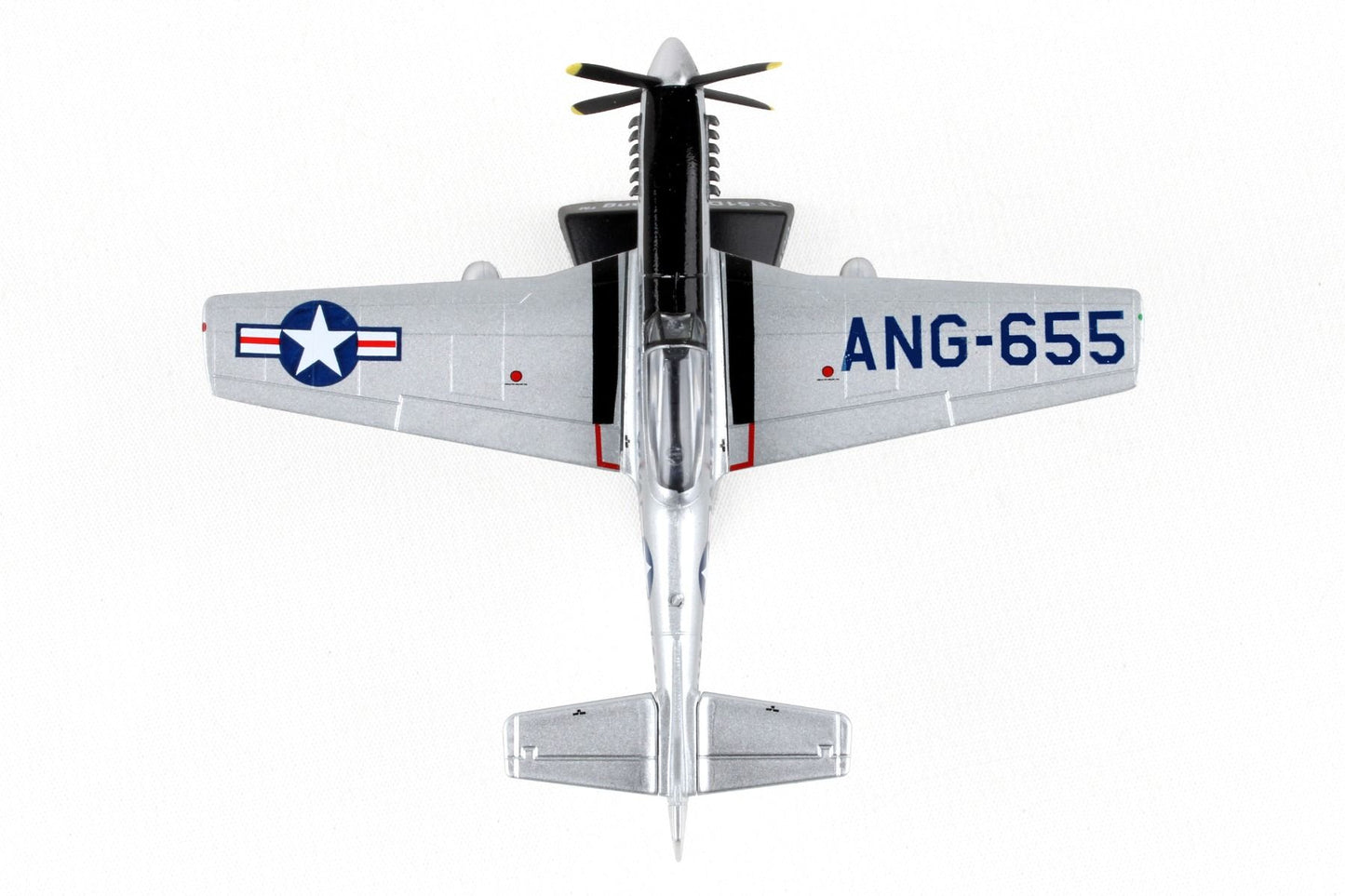 The P-51D Mustang was built as a long-range fighter and bomber, and was the best fighter aircraft of late WWII, seeing action in other engagements as well. At the time, no other combat plane could go as far, fly as high, or go as fast as the P-51D. In 1944 the Mustang was recognized as the best single seat long rage escort fighter. Over 15,000 P-51s were produced. The Tuskegee Airmen were the first African-American aviators in the United States armed forces who fought during World War II. This Die-cast Metal airplane model comes in 1:100 scale with plastic stand and model is approximately 4 inches long with 4 1/2 inch wingspan.